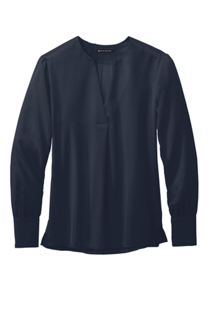 • The soft satin fabric of this versatile blouse has a subtle sheen, lending an elegant look to any outfit. Designed for an easy fit to keep you feeling confident and comfortable. • 4.1-ounce, 100% polyester satin • Anti-static finish • Open v-neck popover • Wide box pleat at back yoke • Gathers at shoulders and cuffs • Three self-fabric-covered buttons at cuffs • Side vents